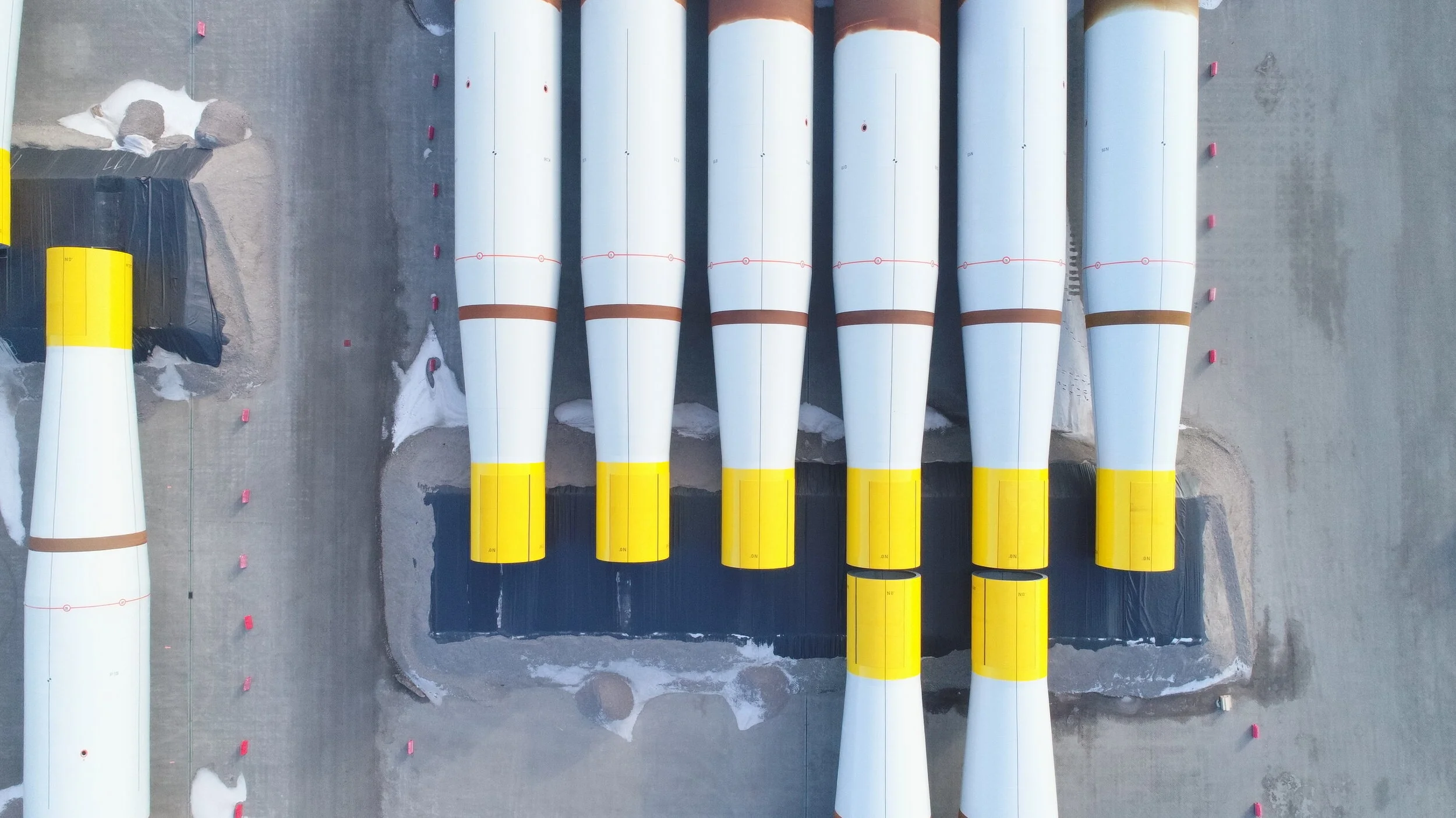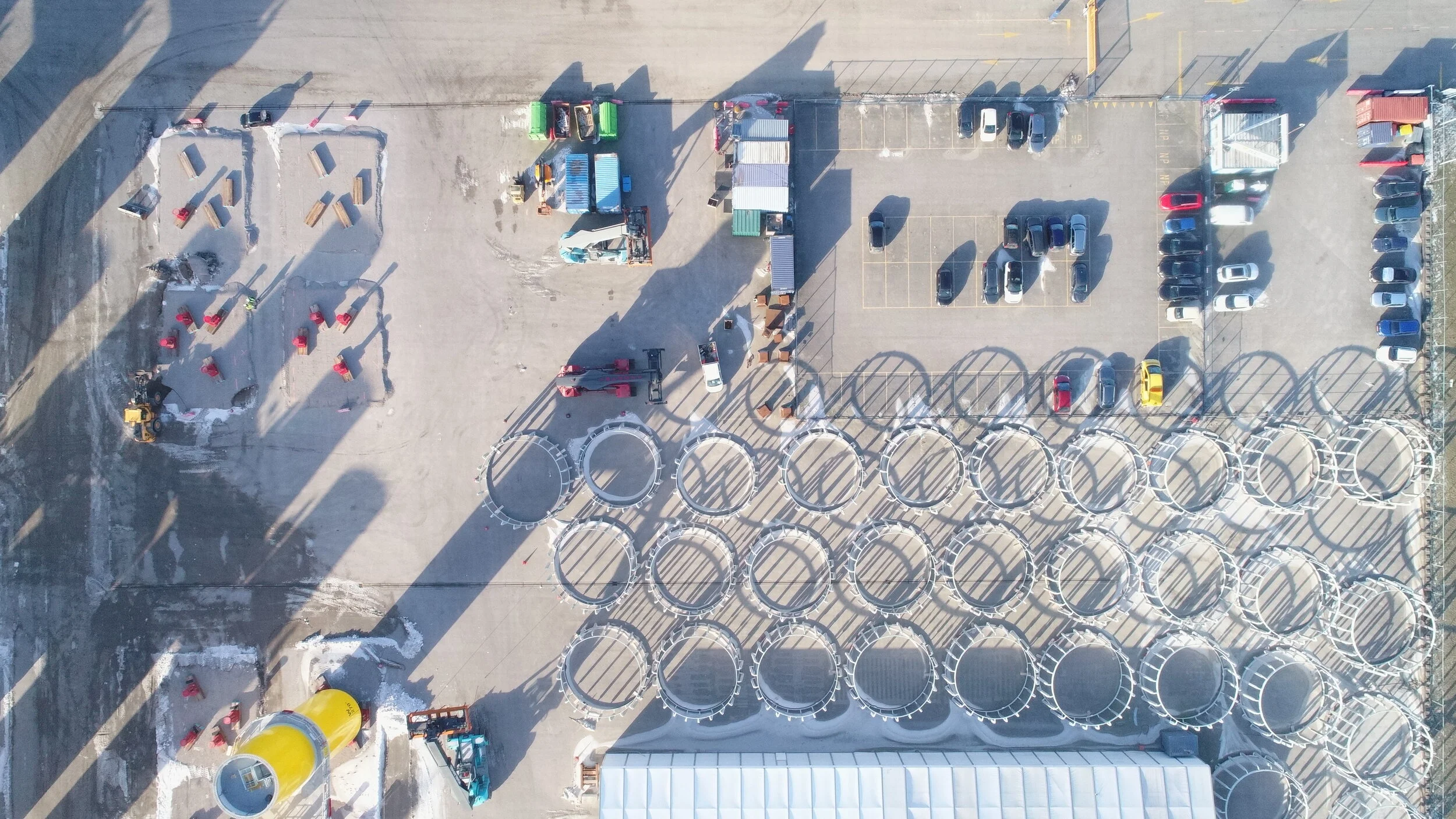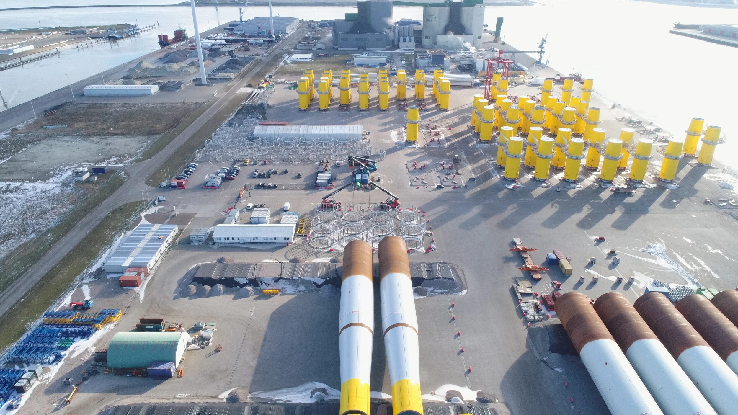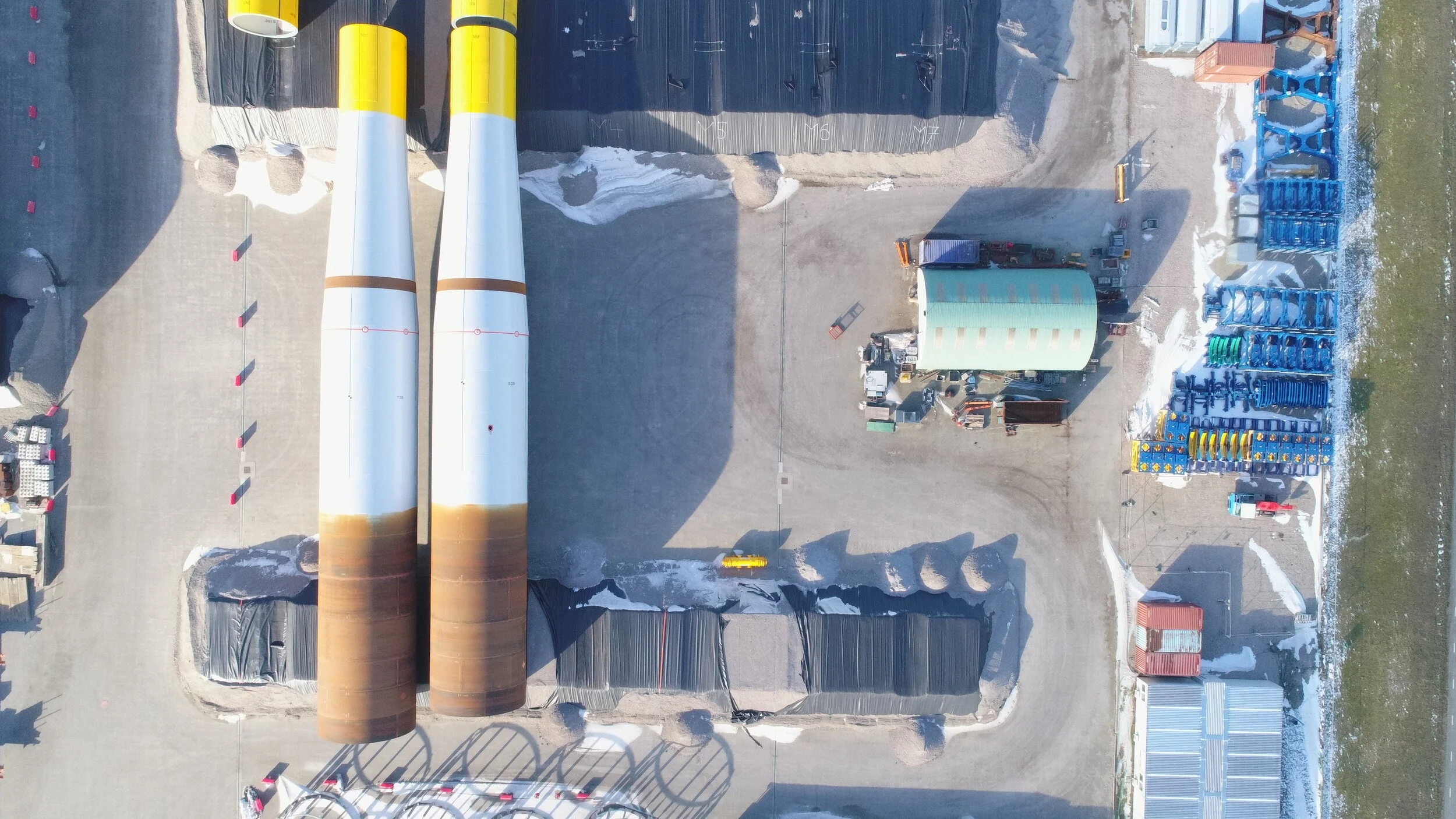 Voor de Buss Terminal in de Eemshaven is er een drone inspectie uitgevoerd. Het opslagterrein voor windturbines wordt gebruikt voor de opslag van onderdelen van grote windturbines welke in Denemarken worden gemaakt en langs de kust van Engeland worden opgebouwd. De Eemshaven is het tussenstation waar alle onderdelen worden gestald. Omdat alle onderdelen apart worden gebracht en gehaald, is het opslagterrein telkens aan verandering onderhevig. Met een 2D (loodrecht bovenaanzicht) van het opslagterrein is inzichtelijk te krijgen hoe de onderdelen op het terrein zijn verdeeld en waar er plaats is voor nieuwe onderdelen. Dergelijke inspectie kunnen op frequente basis worden uitgevoerd, om het inzicht te behouden.